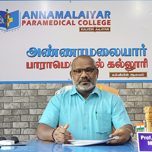 It gives me immense pride and joy to share the vision behind Annamalaiyar Paramedical College, an institution I founded in the year 1999 with the aim of transforming lives through accessible and quality healthcare education. Coming from a humble village in Tiruvannamalai, I understood firsthand the challenges faced by students from rural and economically weaker backgrounds. This inspired me to create a platform where knowledge meets opportunity, and dreams are given the wings to soar.